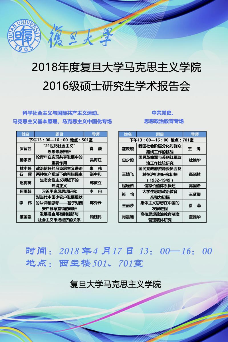 2018年度复旦大学马克思主义学院2016级硕士研究生学术报告会