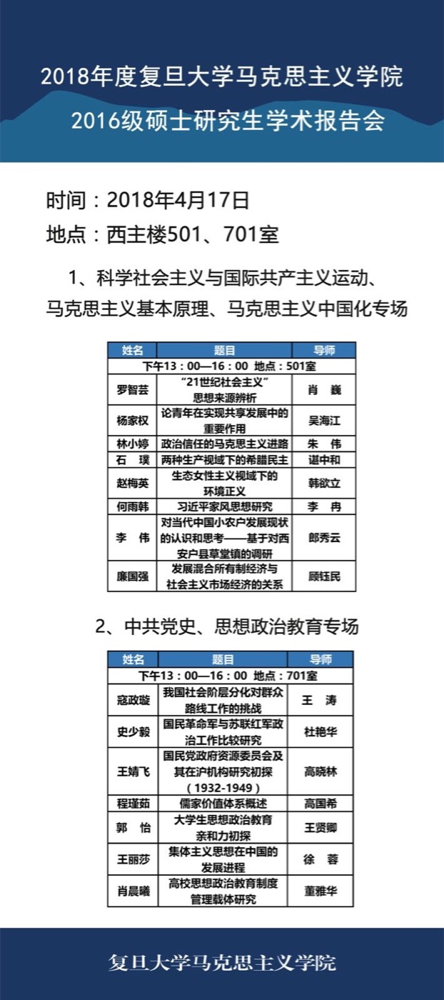2018年度复旦大学马克思主义学院2016级硕士研究生学术报告会