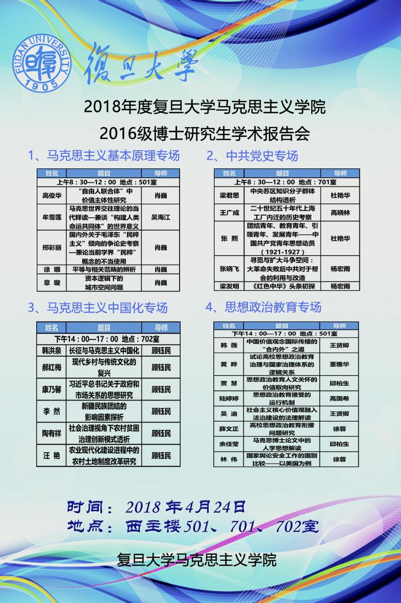 2018年度复旦大学马克思主义学院2016级博士生学术报告会