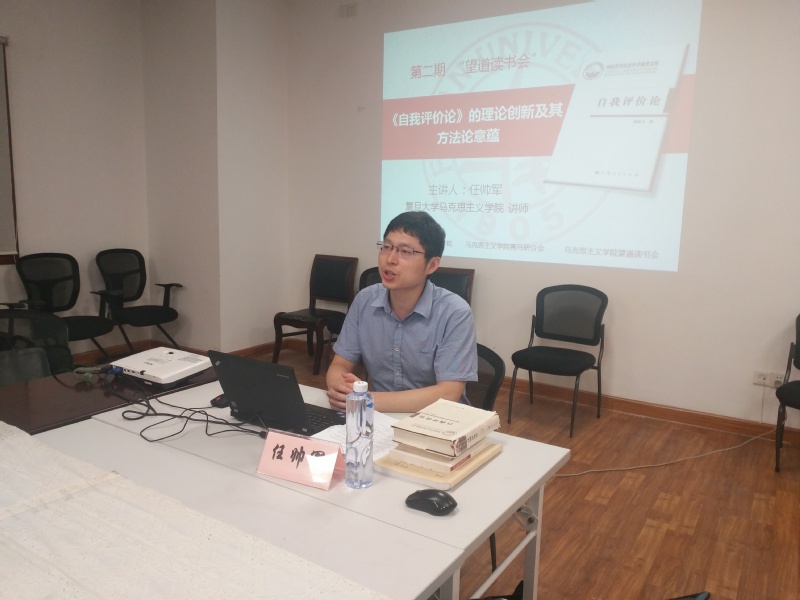 5月30日晚,马克思主义学院“望道读书会”第二期在光华楼西主楼701会议室举行,青年讲师任帅军为全体同学带了“《自我评价论》的理论创新及其方法论意蕴”的专题报告。本次活动吸引了10余名青年学子到场参与,活动现场气氛热烈。