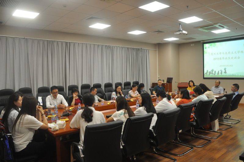 相逢有时,求学时光转瞬即逝;毕业在即,分离之后又是启程。6月29日上午,复旦大学马克思主义学院2018届毕业生欢送会在光华楼西主楼501会议室举行。马克思主义学院党委书记董雅华教授,导师代表顾钰民教授、高国希教授、谌中和教授、郎秀云副教授,研工组长刘玲老师以及全体毕业生参加欢送会。欢送会由孙谦老师主持。