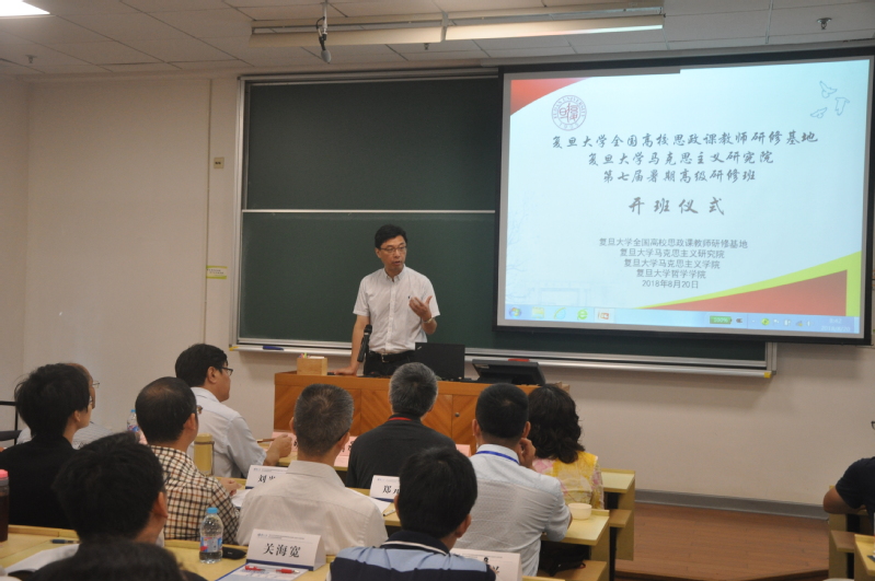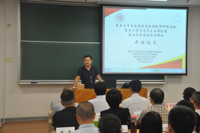 在《共产党宣言》发表170周年、马克思诞辰200周年及当代中国马克思主义伴随改革开放40年发展之际,为进一步深入学习习近平总书记在纪念马克思诞辰200周年大会上的讲话精神,深入研究习近平新时代中国特色社会主义思想,不断深化对共产党执政规律、社会主义建设规律、人类社会发展规律的认识,不断开辟当代中国马克思主义、21世纪马克思主义新境界,推进当代中国马克思主义的理论创新,培养既具有较高马克思主义理论素养、又具有现实关怀和理论敏锐性的马克思主义青年学者,积极推动全国马克思主义理论青年学者的学术交流,复旦大学全国高校思政课教师研修基地、马克思主义研究院、马克思主义学院、哲学学院于2018年8月19-24日,联合举办了第七届暑期高级研修班,主题为“新时代与马克思主义”。来自全国各地高校的青年学者共60人参加了此次研修活动。