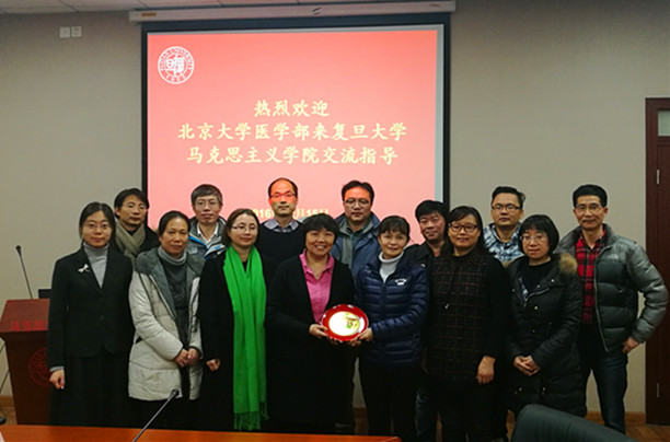北京大学医学部哲学与社会科学系一行来我院考察交流2016年12月15日,北京大学医学部公共教学部党委书记,哲学与社会科学系主任王玥教授一行9人来我院考察、交流。我院党总支书记肖永春老师、四位教研室主任刘学礼、张济琳、王涛、张奇峰老师接待了来访专家,双方就研究生、本科生思政课教学、实践课建设、慕课讨论班、思政课教学团队建设等问题进行了深入的交流和讨论。
