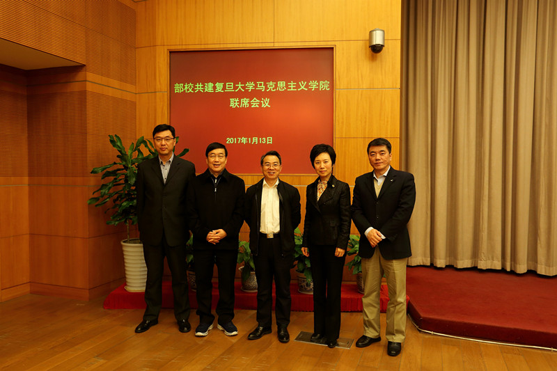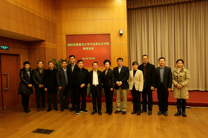 2017年1月13日上午,在市委宣传部会议室,召开了市委宣传部和复旦大学共建复旦大学马克思主义学院联席会议,参加会议的有:市委常委宣传部部长董云虎、副部长燕爽、复旦大学党委书记焦扬、校长许宁生、党委副书记刘承功、市委宣传部理论处处长朱鸿召、副处长梁青、复旦大学党委宣传部常务副部长陈殷华、副部长周晔、李冉、马克思主义学院党总支书记肖永春、副院长吴海江、徐蓉及相关人员。