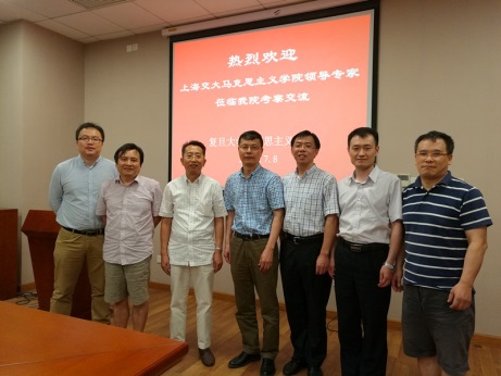 2016年7月8日下午,上海交通大学马克思主义学院黄伟力副院长、高玉林副教授、汪胤教授以及研究生院院长助理郑震副教授一行四人来我院考察、交流,吴海江副院长、肖巍教授、王涛老师接待了来访专家,双方就研究生教学改革、实践课建设、研究生讨论班、留学生公选课等问题进行了深入的交流和讨论。