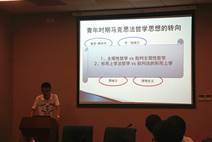 我院2014级硕士研究生学术报告会于2016年10月18日成功举办。本次报告会分为两个会场,来自各个专业的同学分别进行了汇报。万臣臣探讨了中国近代宪政的历史演进及当代中国宪政建设;王亚锋汇报的主题是生态社会主义正义观的历史坐标分析;刘恩至探讨了青年时期马克思法哲学思想的转向;杨成尚结合互联网快速发展的现代特征对互联网时代的劳动、生产、社会交往和思维方式进行讨论;杨瑞宁从知识分子群体演变过程及特点勾画了1949年以前中国的知识分子群体;尹怀恩立足于改革开放深入推进的背景阐释新公共服务理论与合资企业基层党组织建设问题;张晨运用文化-价值-社会-政治的分析框架从形态、关系与路径入手剖析中国传统政治文化;陈春霞分析了动漫游戏产业的价值取向与青少年价值观培养;黄益倩介绍了媒介化背景下人与媒介的关系及危机;施微探讨了受众理论视角下的网络思想政治教育;白羽弘探索了三权分置下农地集体所有制有效实现形式;师睿基于“解放”的视角探讨了马克思主义妇女理论在当代中国的新发展;宋海鹏以马克思主义中国化的微观个案考察了党性-人民性理论的历史演变与中国改造问题。导师们对每位同学的论文都进行了鞭辟入里的点评。