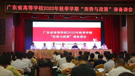 9月20日,由广东省教育厅主办、华南师范大学马克思主义学院承办的广东高校2020年秋季“形势与政策”课备课会在广州东山宾馆顺利举办。出席本次备课会嘉宾有广东省教育厅思政处副处长陈琦,广东省高校思想政治理论课教学指导委员会主任委员、华南师范大学马克思主义学院院长陈金龙教授,广东省高校形势与政策教指委委员汪永智、秦珊、蔡立彬、罗立军、李瑞清及省内各高等院校近300名思政教师。备课会各场报告由华南师范大学马克思主义学院胡国胜副院长、唐富满副教授、董海军副教授分别担任主持。