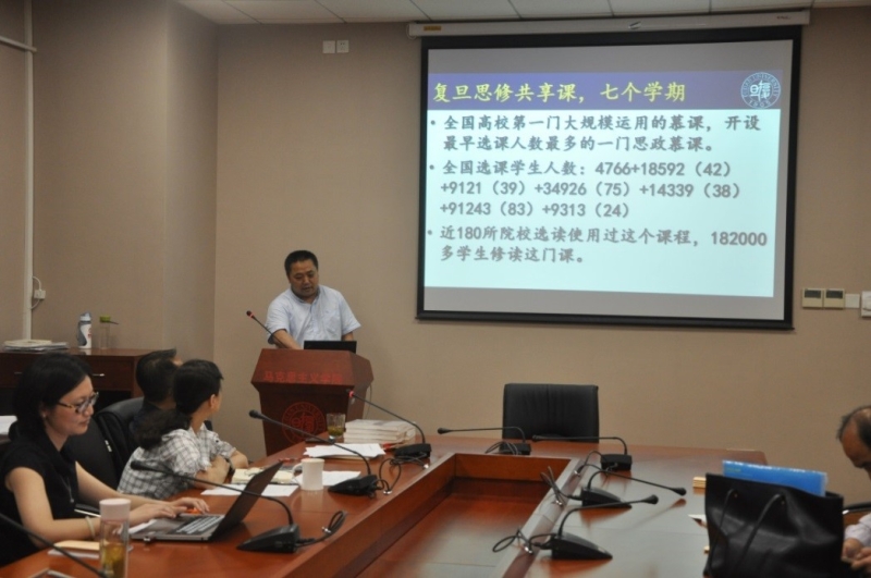 胡志辉老师就“‘慕课’会促进思政课教学理念与方式的转变吗?——‘慕课’在思政课的运用”为题进行了报告。他从复旦大学“思想道德修养与法律基础”共享课开设七个学期以来的进展与反响讲起,进而深入探讨了共享课建设中的几个问题,如:名师主讲与团队讲课哪个更能体现教师价值?在线视频+直播课+小班讨论,三者如何协调统整?最后胡老师与大家分享了他对思政课创新的两点思考:一是,创新首先是教学理念的创新,二是教学模式的改革和提升。