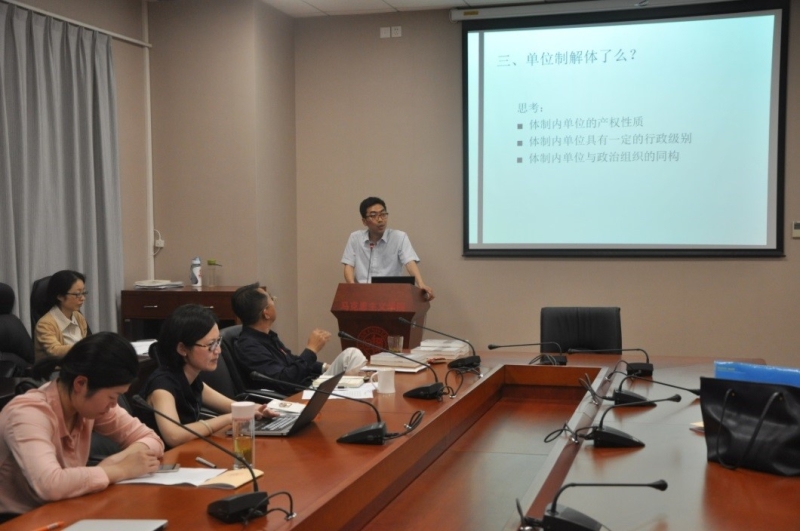 李威利老师报告的题目是“新单位制:当代国家治理机制的调整与重构”。单位制是指改革之前的中国,个人和单位组织之间的高度关联。在改革以后,国家是以何种机制进行空间治理的?他指出,国家进行空间治理的主要资源和机制是“体制内单位”。在政治和国家治理领域中仍然存在着清晰的双轨制:一方面是机关、高校、事业单位、国企等体制内单位;另一方面是民营、社会组织、网络等体制外空间。这种新型关系可以用“新单位制”的概念来阐释。从这一意义上说,“单位”仍然在当前中国国家治理体系中发挥着至关重要的功能和作用。