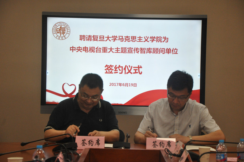 619上午,聘请复旦大学马克思主义学院为中央电视台重大主题宣传智库顾问单位签约仪式在马克思主义学院501会议室举行。
