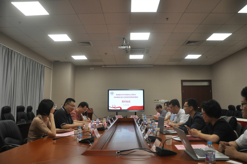 中央电视台总编室宣传统筹部及上海记者站有关人员、校党委宣传部有关负责人、马克思主义学院党政班子成员参加签约仪式。会后,来自央视的编辑、记者还与马院部分教师进行了座谈交流。